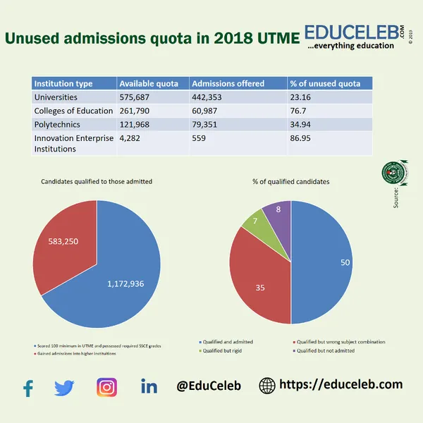 380,477 Tertiary Admission Slots Unfilled in Nigeria 2018
