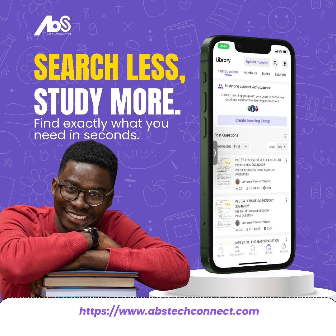 Continue readingIn today's fast-paced world, the landscape of education is transforming. For Nigerian students, technology is no longer a luxury; it's a powerful tool reshaping how they learn, connect, and achieve their goals. But with the high cost of textbooks and the constant hunt for reliable resources, many students find their academic journey filled with unnecessary hurdles. What if you had a personal academic companion, designed to make learning simpler, more accessible, and absolutely affordable? The Struggle for Quality Educational Resources is Real Every student knows the struggle: scrambling for expensive textbooks, searching for past questions in crowded libraries, or feeling lost during registration and clearance processes. These gaps in access can create significant barriers to success, leaving even the most dedicated students frustrated. The digital age promises a solution, but the question remains: where can students find a platform that truly understands their unique needs? Your Absolute Solution for Smarter Learning is Here Meet the game-changer in Nigerian education technology—a platform built by students, for students. This isn't just another blog; it's a comprehensive ecosystem designed to be your ultimate student companion. Its mission is clear: to provide absolute solutions that bridge educational gaps and empower every learner with the right tools. Here’s how it empowers your academic journey: · A Vast Digital Library at Your Fingertips: Say goodbye to textbook woes. Access a massive catalogue of materials, including free textbook uploads for those who can't afford to buy new books. · Master Your Exams with Ease: Get instant access to a comprehensive collection of past questions and answers for universities, polytechnics, and colleges of education, all in one place. · Learn Your Way with Video & AI: Complex topics become simple with simplified educational videos and notes. Plus, get personalized help with an intelligent AI assistant ready to answer your questions. · Navigate Campus Life Confidently: From admission tips and school news to guides on registration, this platform ensures you're always informed and prepared. · Join a Thriving Community: Connect with peers, share insights, and say your mind in a dedicated community space, fostering collaboration and support. More Than an App, It's Your Academic Community This platform goes beyond providing resources; it builds a community. By joining, you become part of a movement that believes every Nigerian student deserves an equal opportunity to succeed. Ready to transform how you learn? Explore and discover a world of academic support today. Let this be your absolute solution, right at your fingertips. 👉 Click HERE to visit the AbS platform and start your smarter learning journey! Stay connected and never miss an update: · Follow us on Facebook HERE for the latest campus happenings. · Join our WhatsApp Group HERE for unlimited free past questions. · Download our Mobile App on the Google Play Store HERE and Apple App Store HERE for learning on the go. - Explore AbS Digital Library, Download endless books across genres at zero cost HERE Your academic goals are within reach. Share this post with your friends and colleagues and help them unlock their potential too! Credit: AbS Posted By: Lyve #Blog #AbS