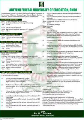ADEYEMI FEDERAL UNIVERSITY OF EDUCATION, ONDO 35TH CONVOCATION CEREMONY SCHEDULE OF EVENTS